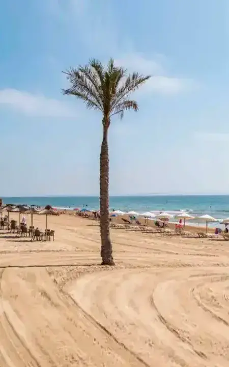 A pocos kilómetros de Elche, la Playa de Los Arenales del Sol es uno de los rincones más destacados de la Costa Blanca. Con su arena fina y dorada, y sus aguas cristalinas, es un lugar ideal para quienes buscan relajarse en un entorno natural. La playa cuenta con un paseo marítimo lleno de restaurantes y cafeterías, perfecto para disfrutar de una comida con vistas al mar. Además, su cercanía a parajes naturales como el Clot de Galvany la convierte en un destino atractivo para los amantes de la naturaleza..